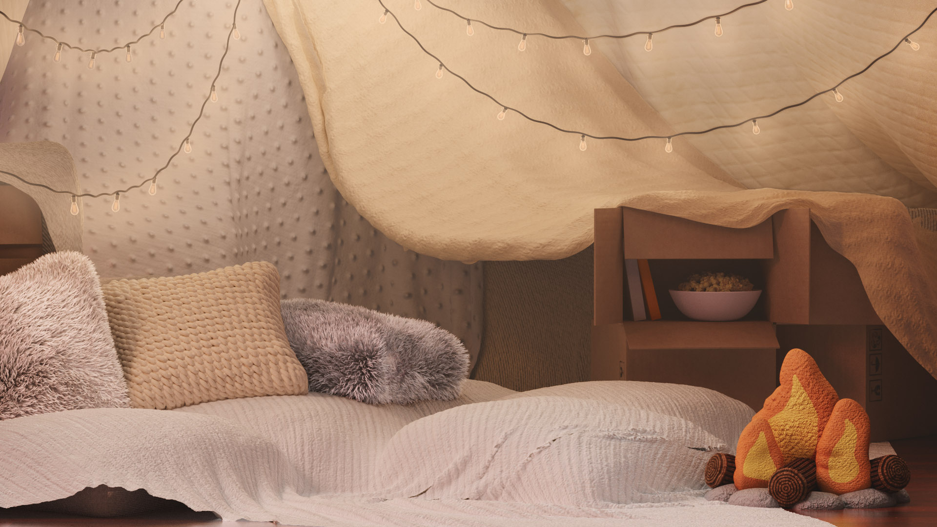 The team created illustrator mock-ups in Illustrator that I took into Cinema 4d to extrude the artwork into foam-like cutouts